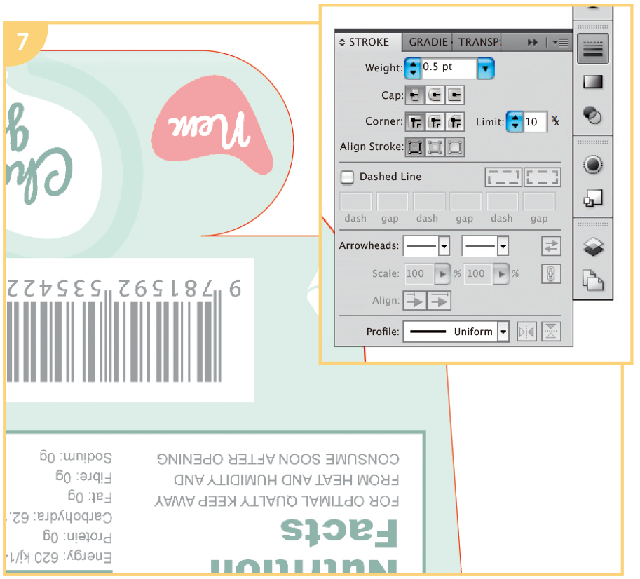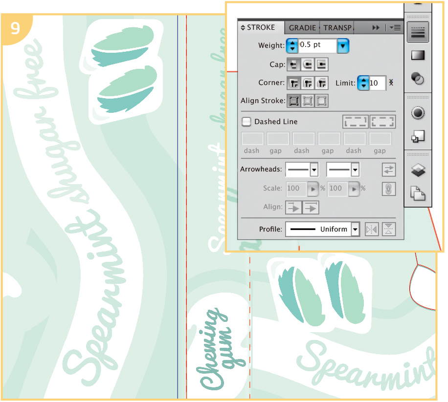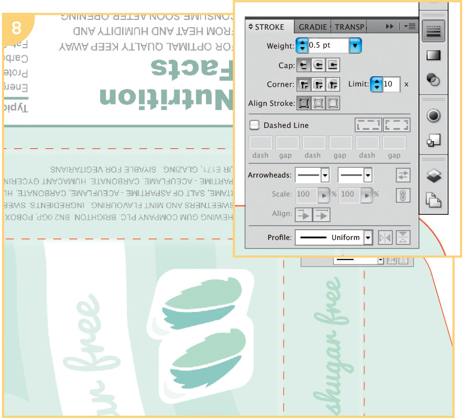 For this small template, I used an 11 × 81⁄2in (28 × 21.6cm) artboard. Gently open out your package and scan it. Place this scan on the Original package layer and then lock that layer by clicking on the padlock icon.