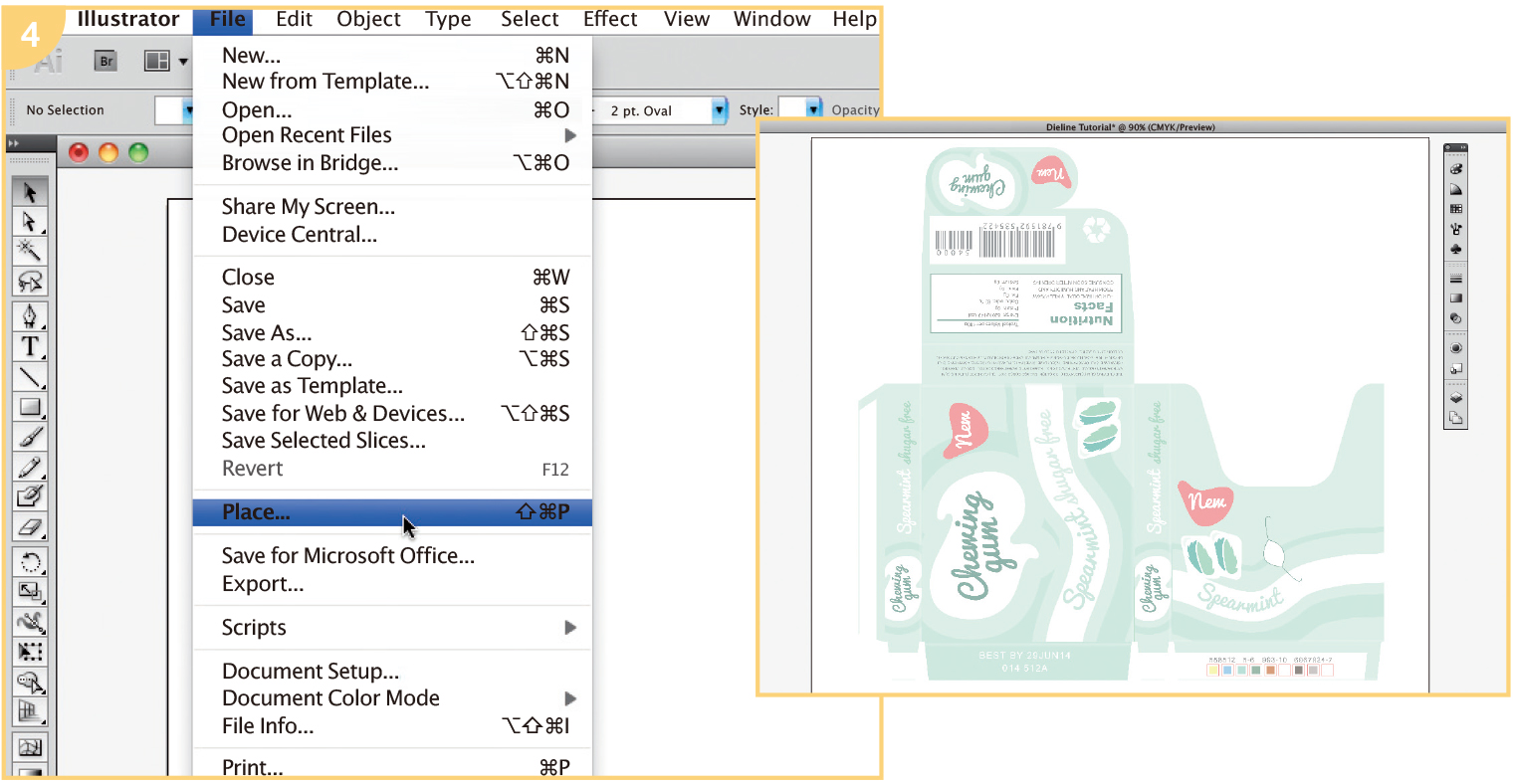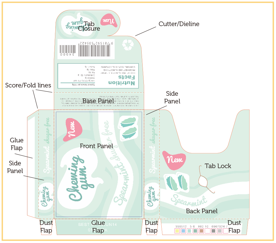 Here we explain the basics of paper box dielines and how to create one in Illustrator from a pre-existing package. For this tutorial, I used a small gum pack. A dieline template is a flattened outline of the cut and fold lines for a package; it serves as a template. Designers often receive dielines from their printer; however, if your client wants a new style of package or a package structure for which the printer does not have a template, you might need to create one from scratch. If the client gives you a package to use, it’s pretty easy to scan it in and create dielines over it in a program such as Illustrator.